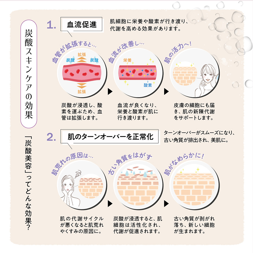 ・炭酸パワーで顔色を1トーン明るく 「先生、今日のお肌良い感じね!」の声をGETできるかも!?