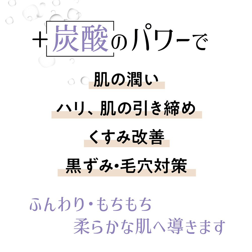 炭酸の作用により、肌表面の古い角質や、毛穴の皮脂汚れをクリアに。