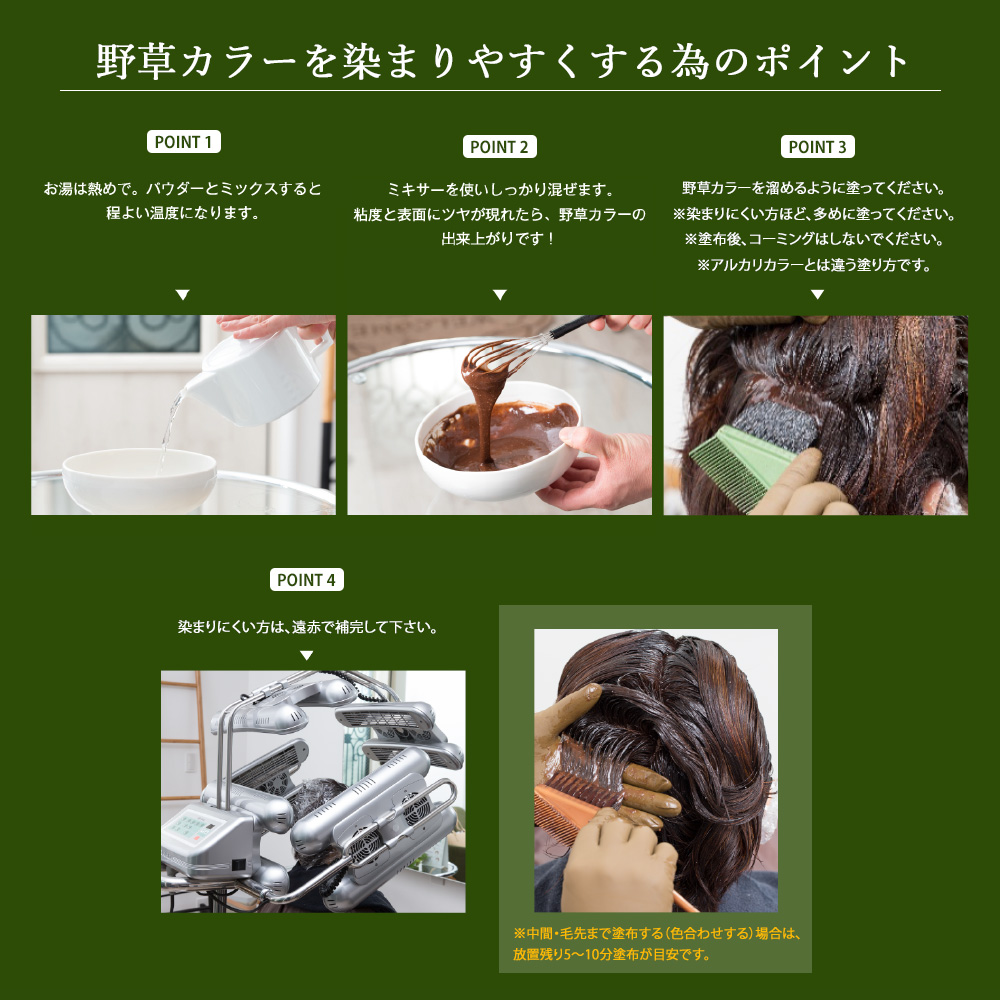 植物系カラーながら早くしっかり染まる。